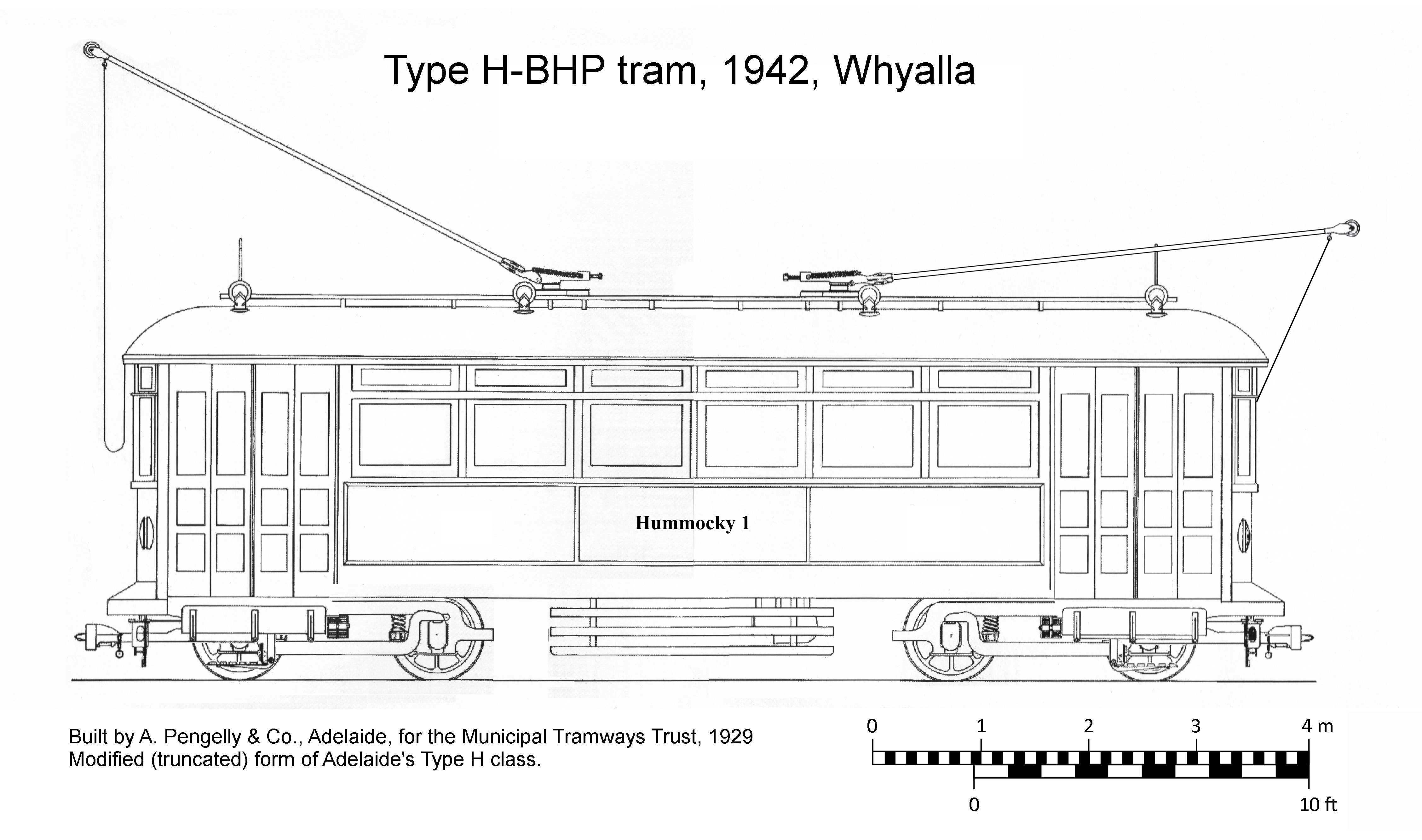 The Type H-BHP tram, introduced in 1942, represent half of Whyalla's 4-strong rolling-stock fleet in 2026.